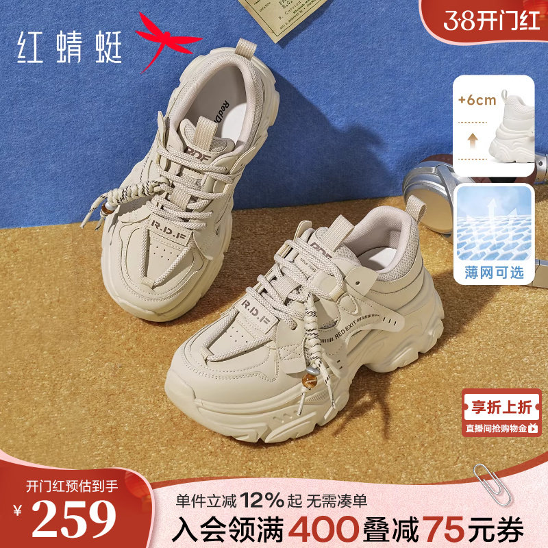 红蜻蜓老爹鞋女2026春季新款女鞋厚底增高时尚休闲鞋透气运动鞋女
