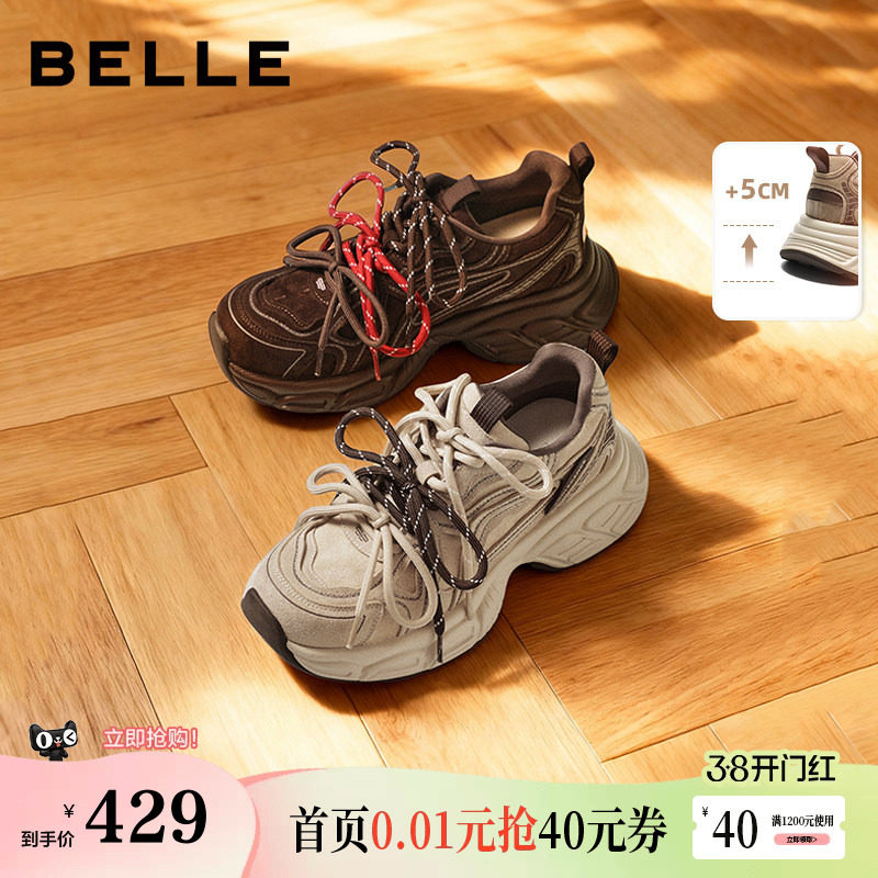 百丽女鞋子厚底增高老爹鞋棕色新款美拉德运动休闲鞋B2945AM6