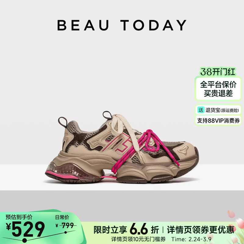 BeauToday厚底老爹鞋女款2026春季新款巨好看不累脚休闲运动鞋子