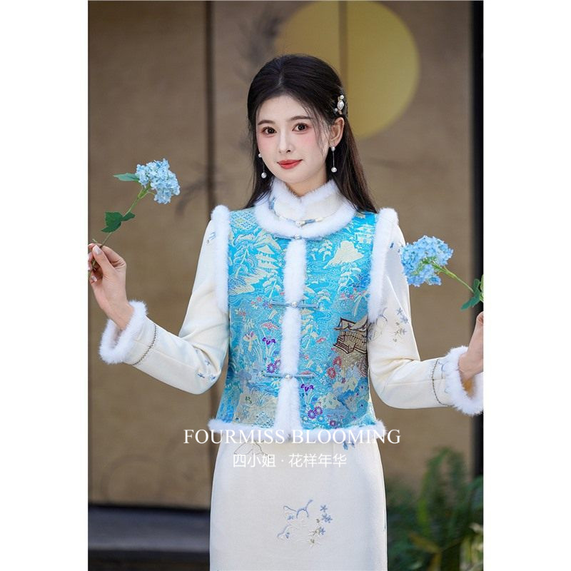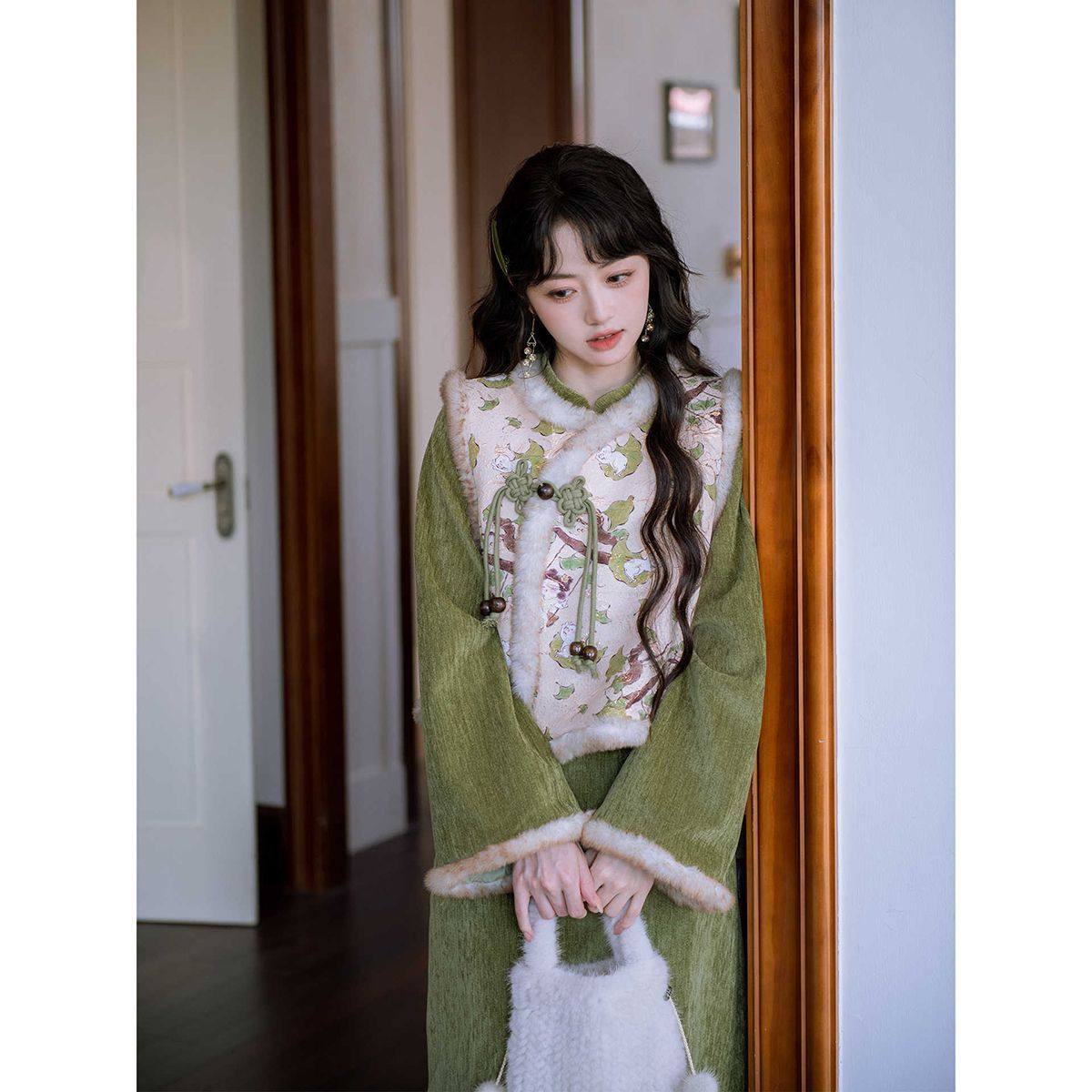 【花样年华】国风旗袍|新中式长袖套装冬季加绒马甲两件套连衣裙