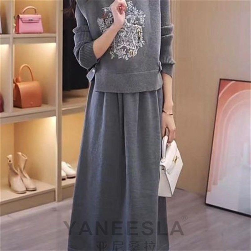 2024秋冬季新款刺绣马甲两件套连衣裙女时尚休闲打底毛衣套装裙女
