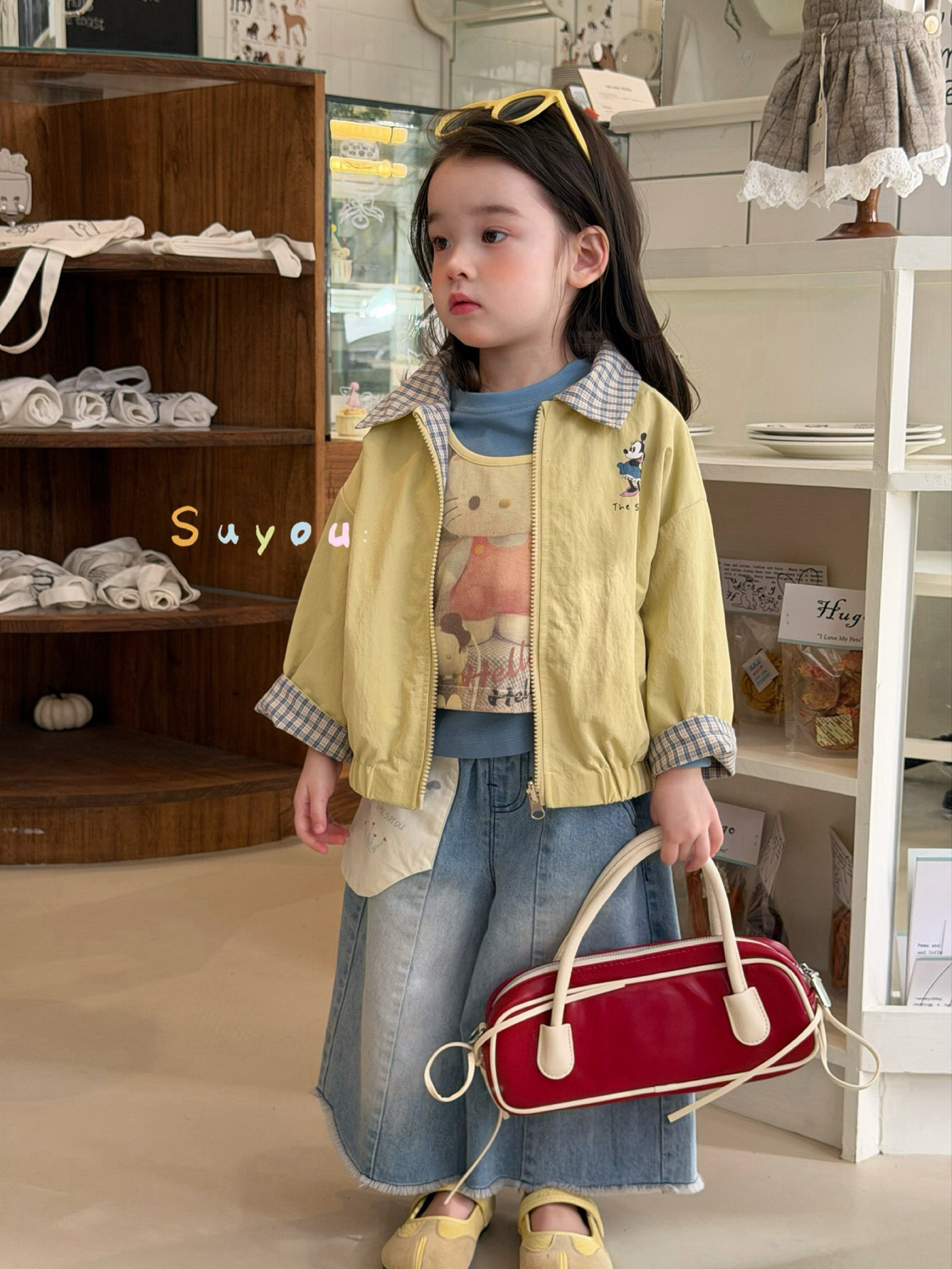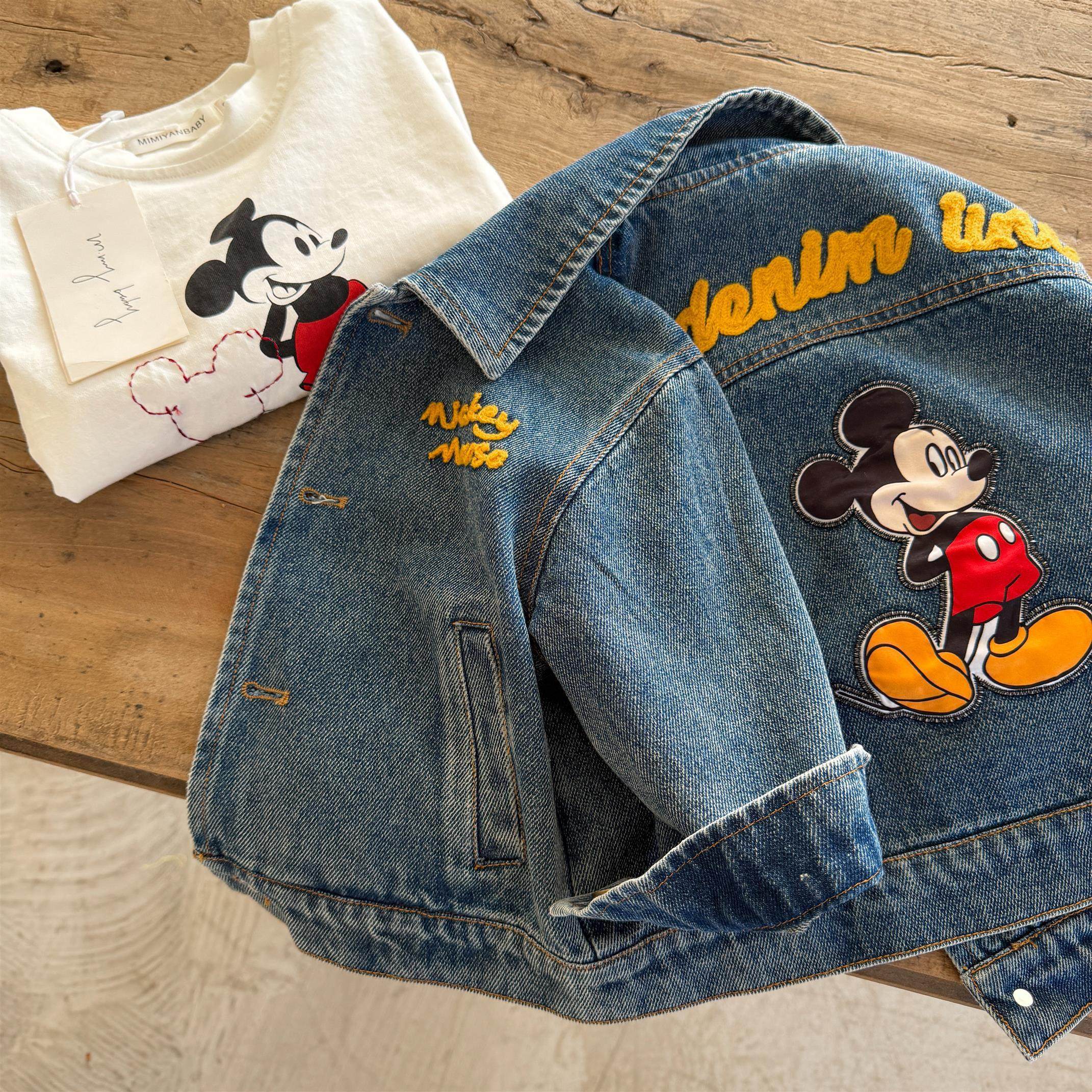 凡妈童装2026春款女童小童韩版后背米奇两面穿夹克外套阔腿牛仔裤