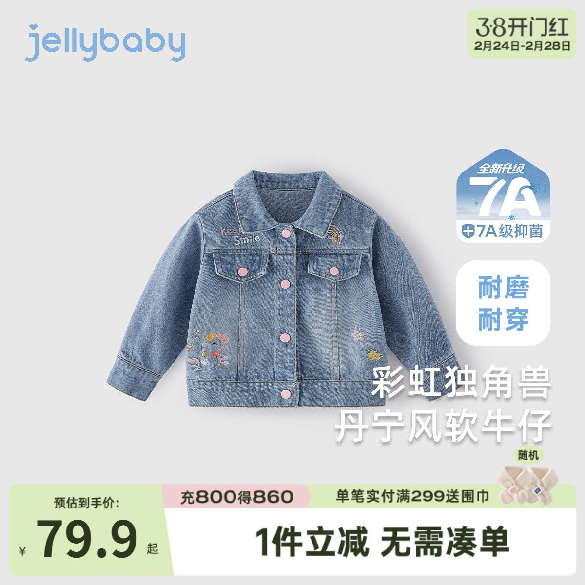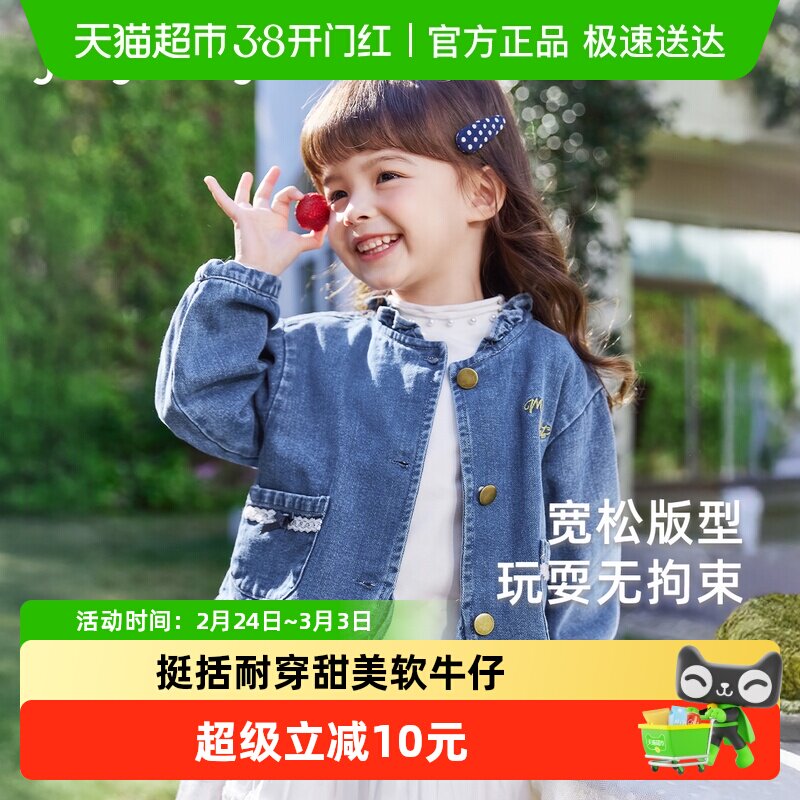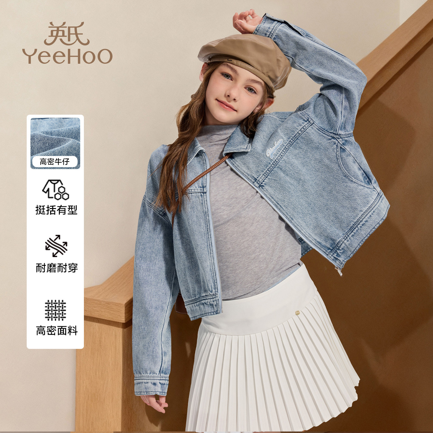 英氏女童牛仔外套2026新款春款儿童洋气时髦牛仔夹克中大童上衣