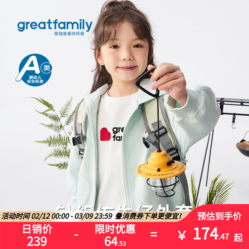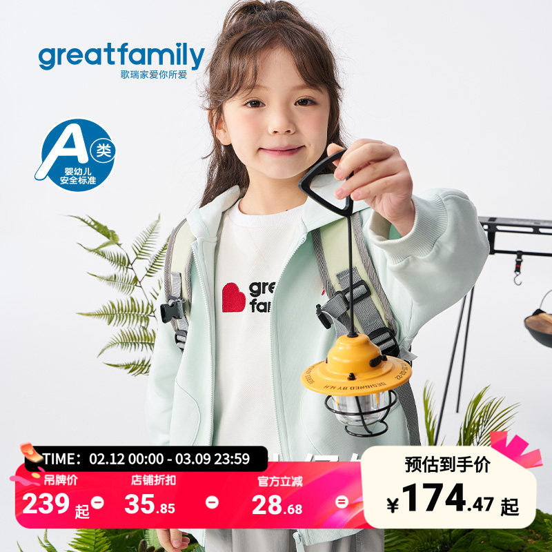 歌瑞家男女童外套2026春款户外休闲简约保暖针织仿牛仔连帽上衣