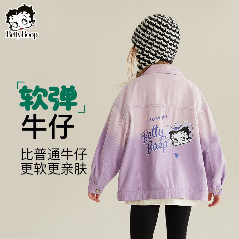 贝蒂童装女童牛仔渐变外套春秋2026新款上衣春款大童翻领牛仔衣