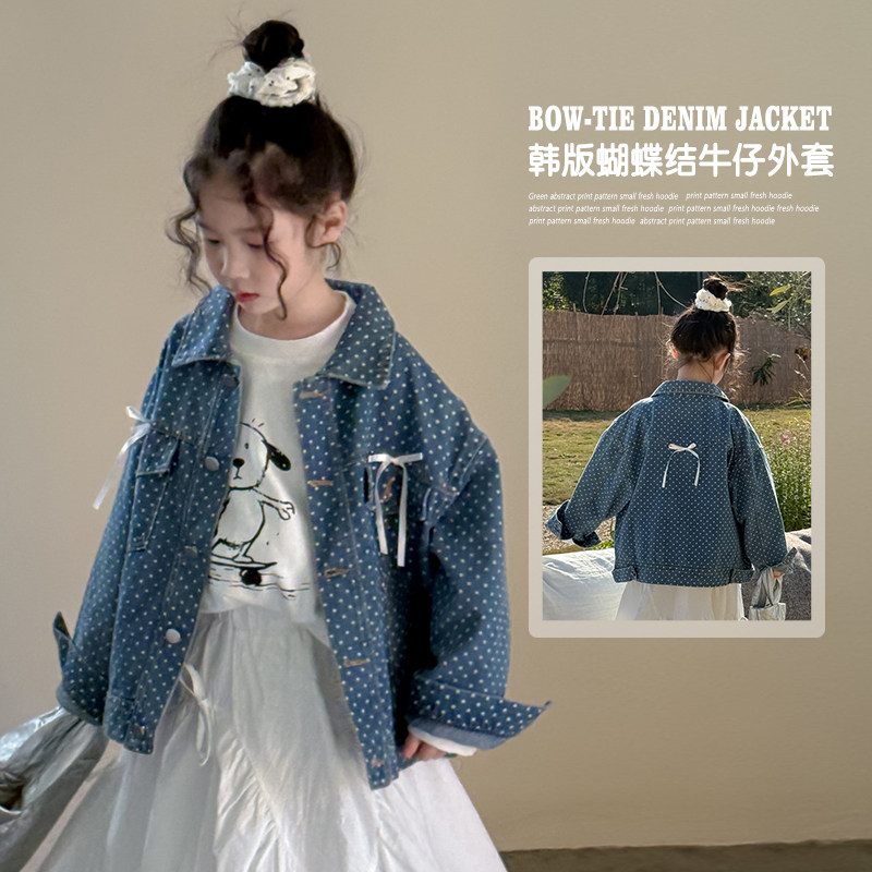 女童好看韩版蝴蝶结牛仔外套春款2026新款儿童女宝设计感长袖穿搭