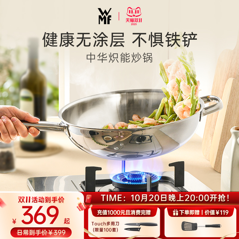 德国WMF福腾宝中华炽能中式不锈钢炒锅无涂层家用电磁炉燃气专用