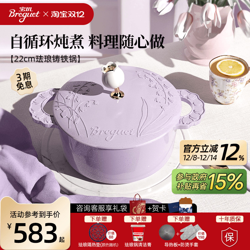 Breguet宝玑珐琅锅铸铁锅平底无涂层焖炖煲汤锅22cm结婚乔迁礼物