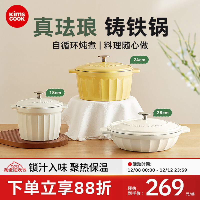 kimscook珐琅锅铸铁锅家用搪瓷炖海鲜锅炖盅砂锅煲电磁炉汤锅煮锅