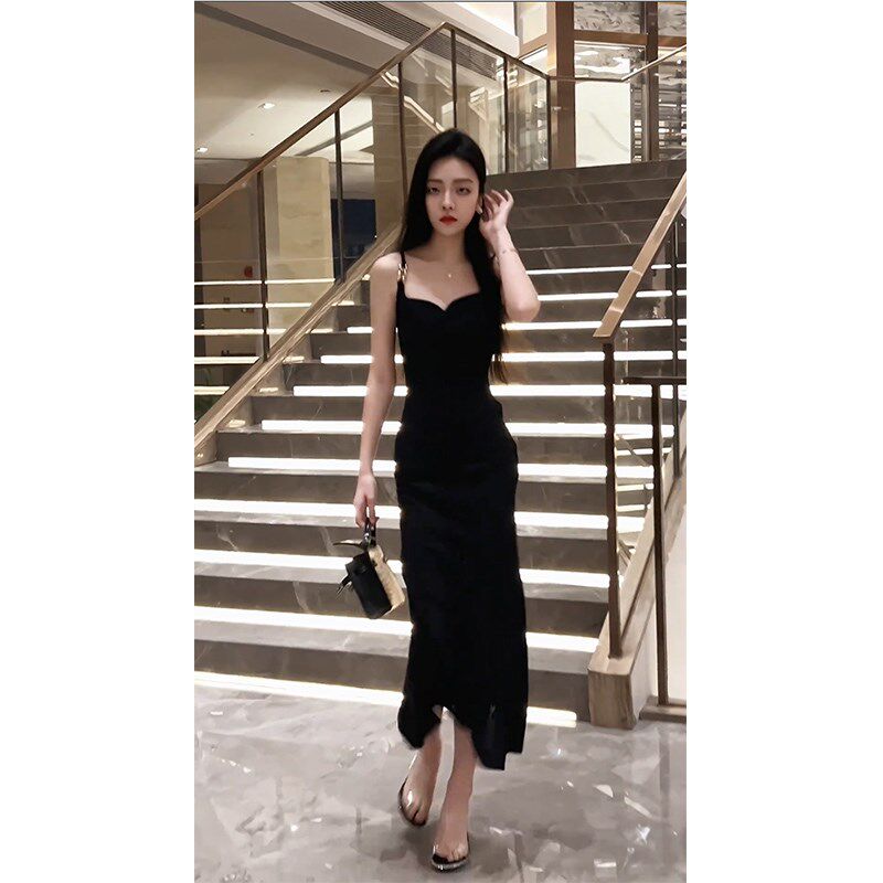 2024夏季新款黑色法式气质吊带连衣裙女高级性感礼服裙收腰鱼尾裙