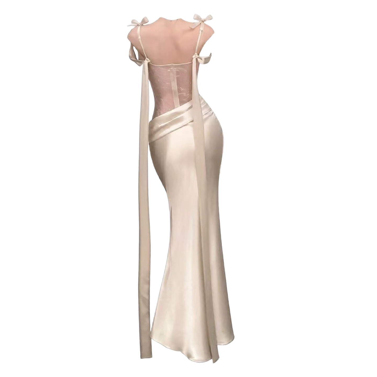 26新款透视蕾丝吊带长裙手工钻花低胸聚拢罩杯性感礼服裙夜场女装