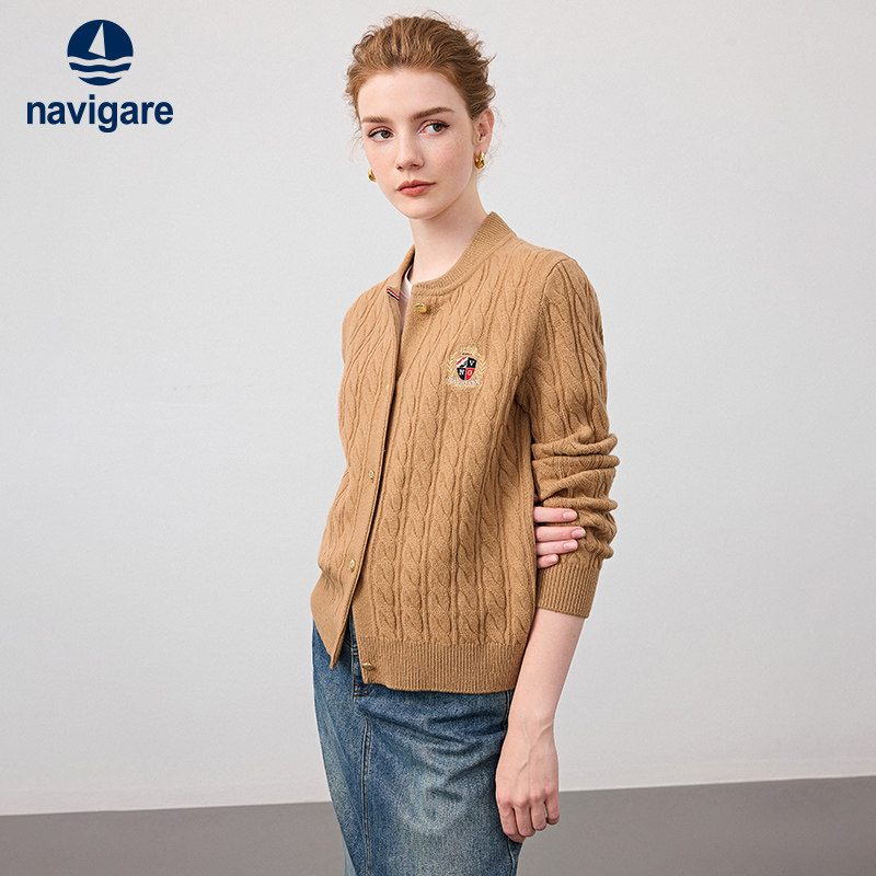【纯羊毛】Navigare意大利小帆船短款针织开衫女秋冬通勤毛衣外套