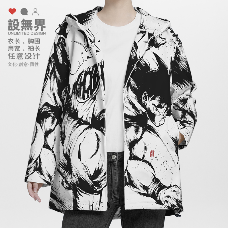 七龙珠水墨画悟空赛亚人弗利沙沙鲁夹克棉服男女动漫外套设 无界
