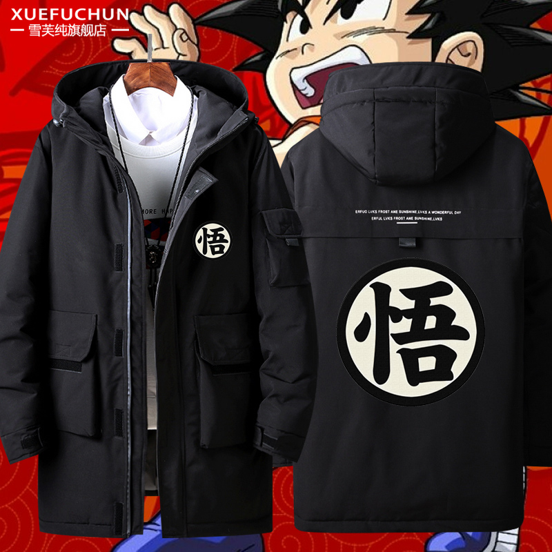 日系ins潮牌七龙珠连帽羽绒服男冬季加厚保暖外套过膝青少年棉服