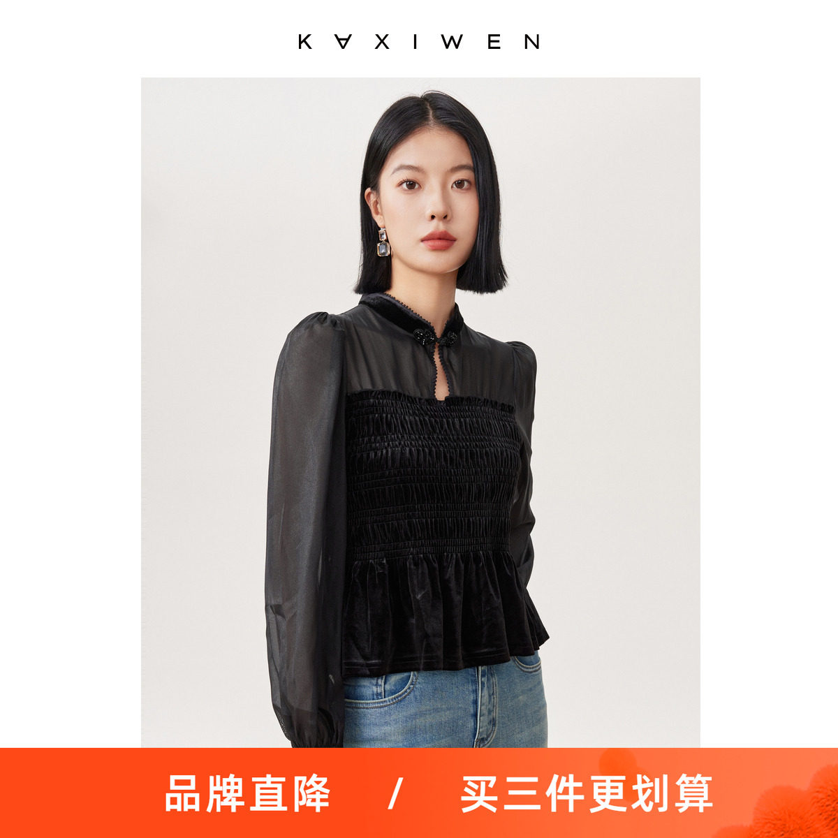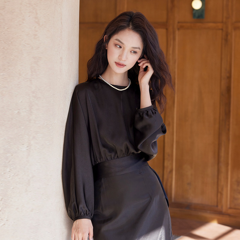 SOMSOM/索玛春季新品风黑色雪纺衫女长袖收腰显瘦百搭高级感上衣