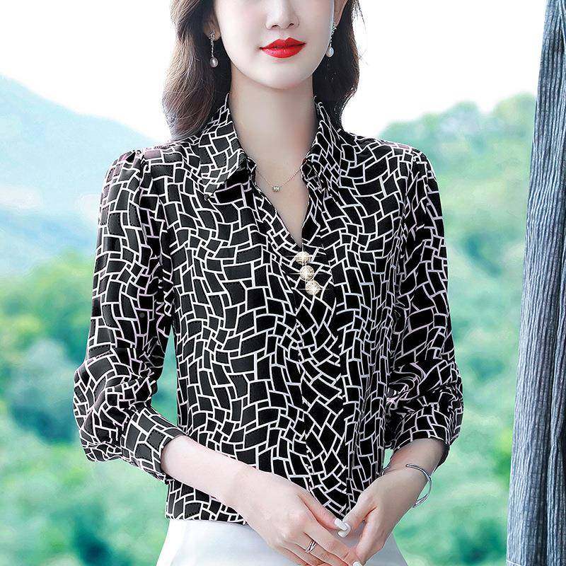 2025新款雪纺衫女长袖v领洋气小衫气质高级感时尚高端上衣衬衫夏