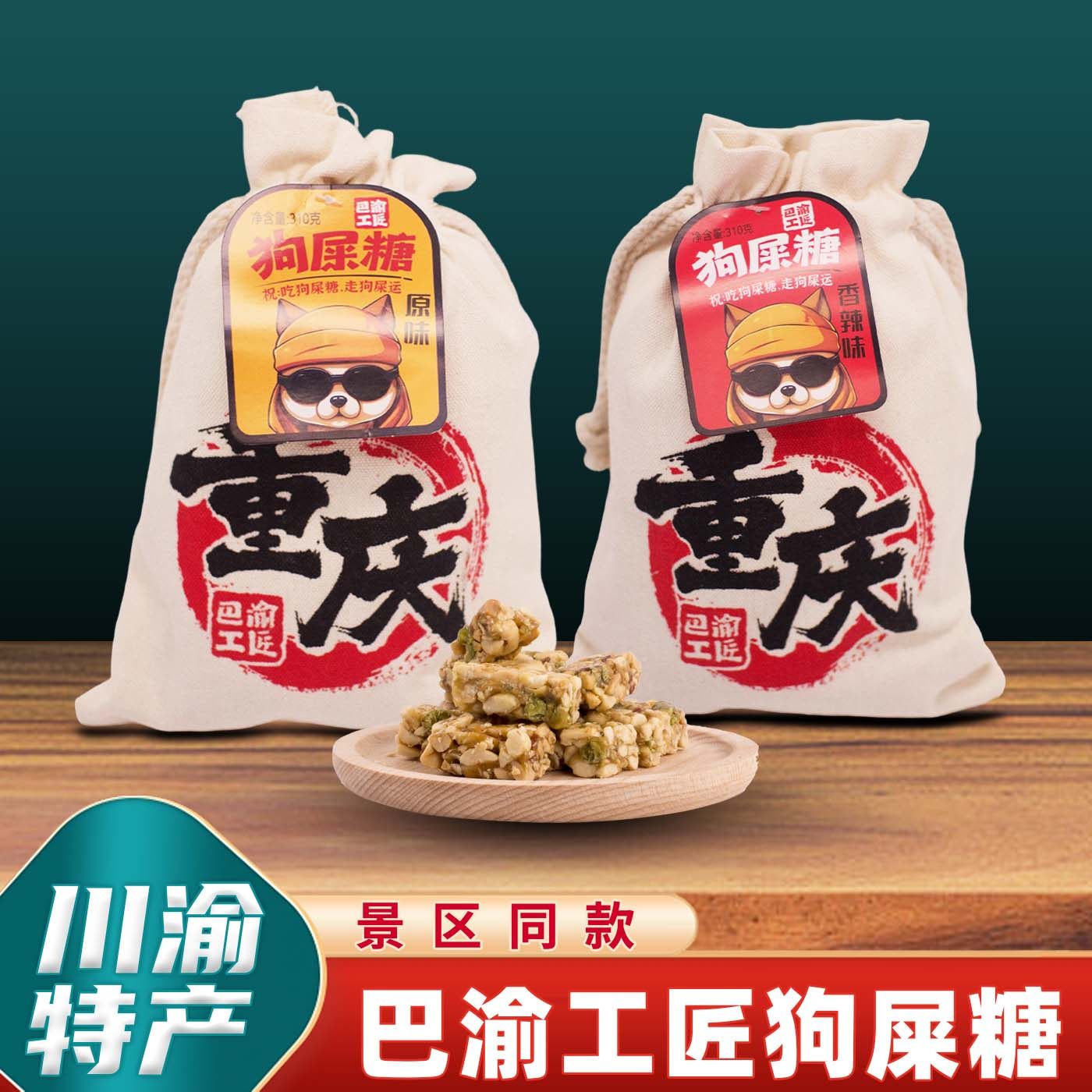 重庆特产巴渝工匠狗屎糖310g布袋装原味香辣味花生酥传统糖果零食