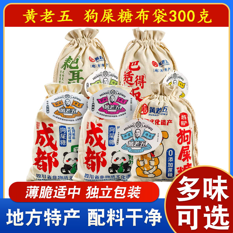 黄老五狗屎糖300g布袋原味香辣木糖醇四川特色伴手礼小吃传统糕点