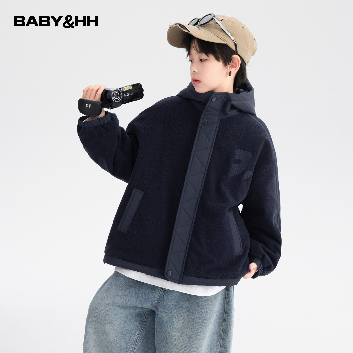 男童秋冬韩范摇粒绒拼接夹棉外套2026新款青少年儿童冬季加厚棉服