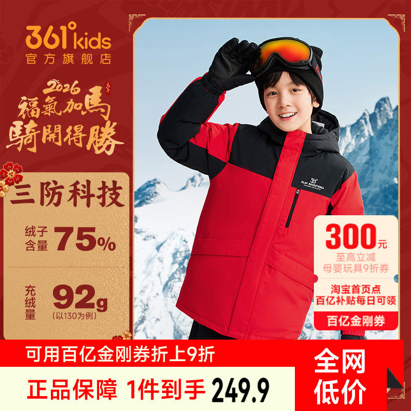 马年新年红色|361度童装男童加绒三防羽绒服冬季新款青少年外套