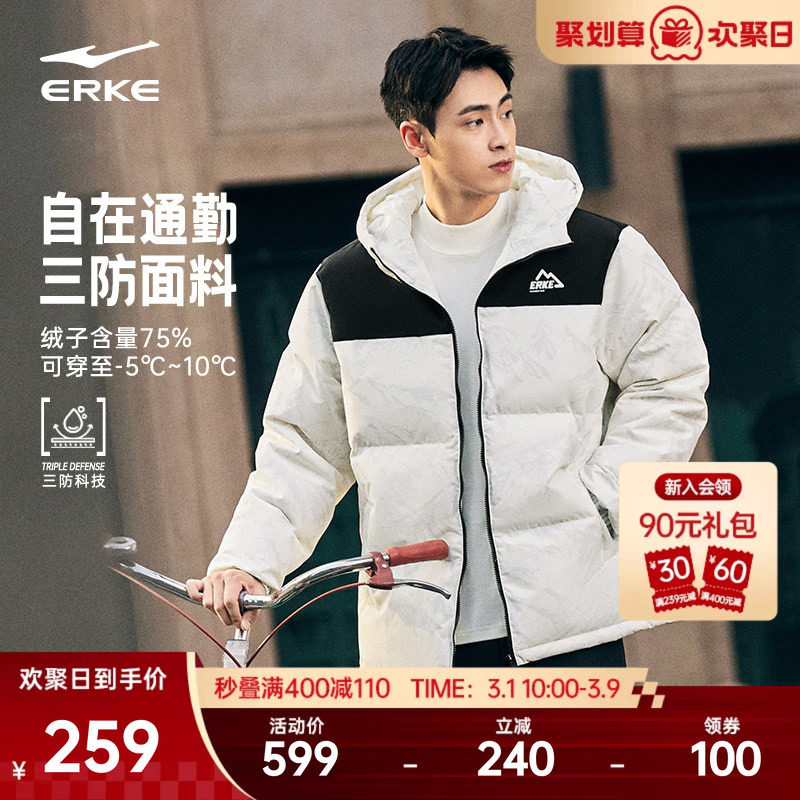鸿星尔克羽绒服男款冬季新款男士青少年三防短款棉服男生外套男装