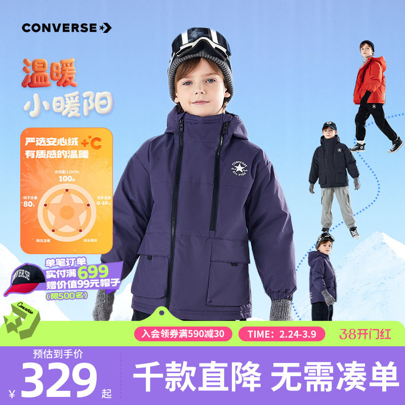 匡威童装男童羽绒服青少年冬季新款儿童保暖防风外套户外加厚连帽