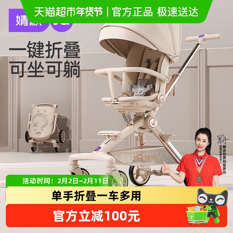 婧麒遛娃神器可坐可躺可折叠高景观0到3岁宝宝轻便双向儿童手推车