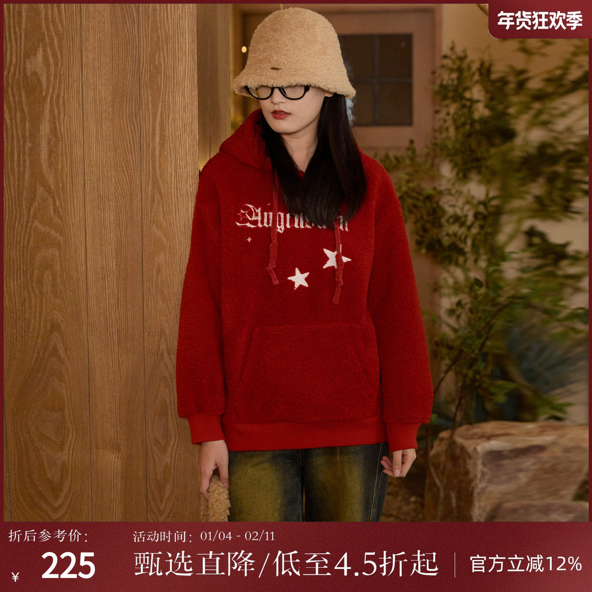 - 大红色卫衣女套头宽松