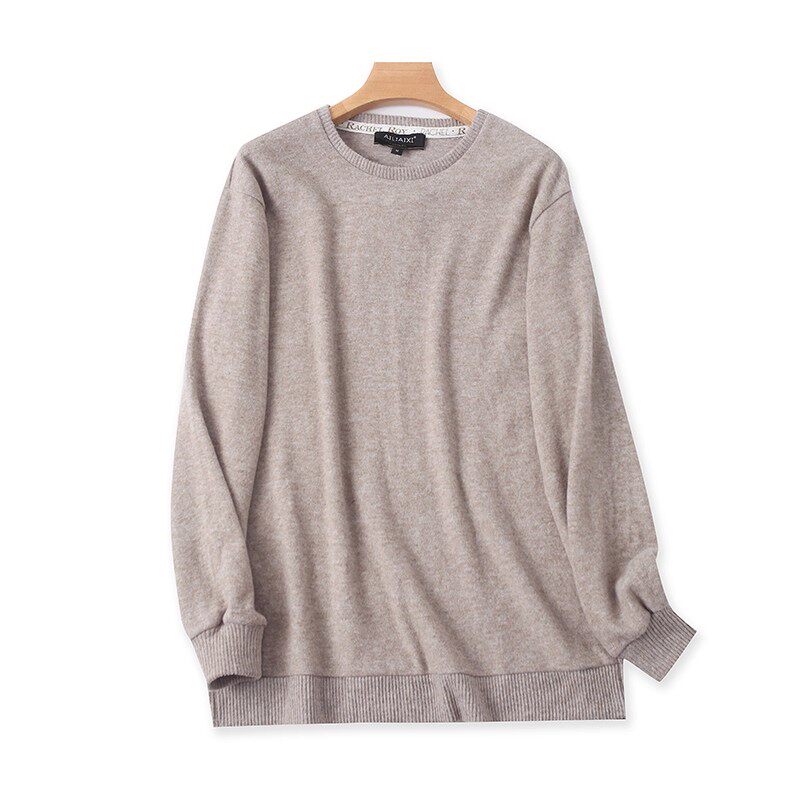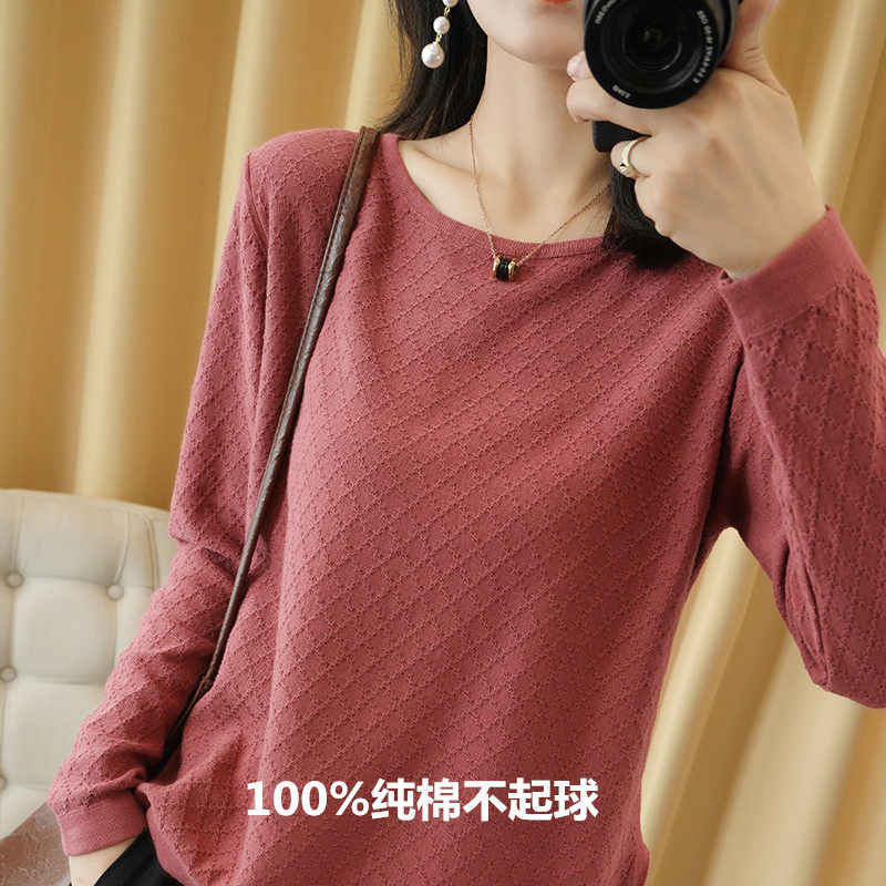 新款100%纯棉针织衫女毛衣镂空开叉外穿圆领棉麻大码宽松打底长袖
