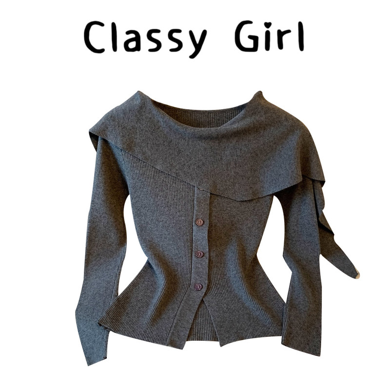 慕兔法式气质开叉长袖针织衫女2025秋新款设计感小众修身显瘦上衣