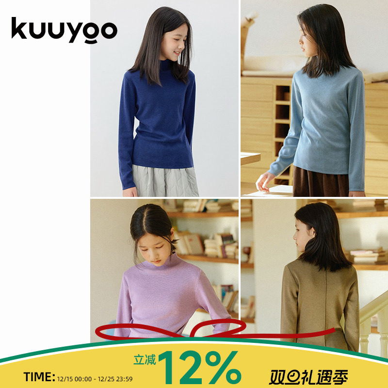 KUUYOO后开叉半高领针织打底衫中大童秋冬保暖百搭儿童长袖上衣
