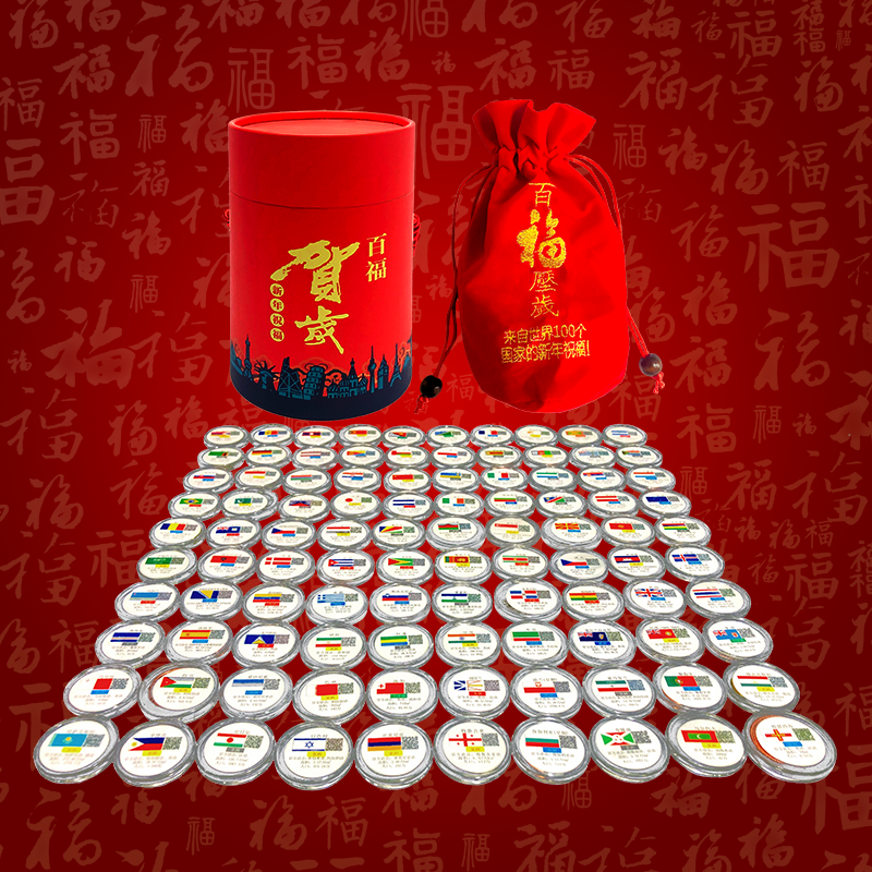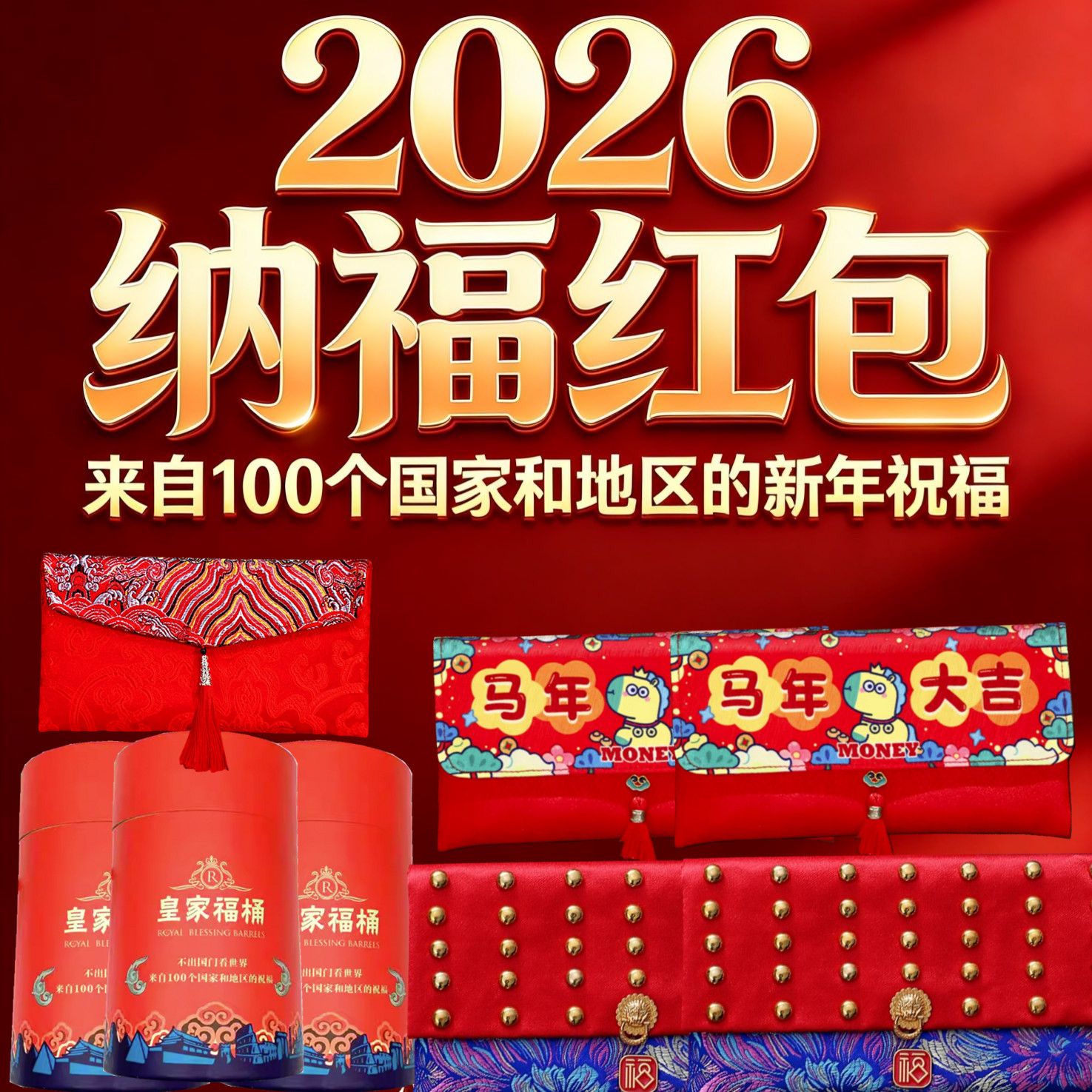 【2026年礼】马跃新程 福纳百祥 创意外国纪念币红包 中国风宫墙红包 百福桶 新年春节压岁钱礼物 硬币100国100枚【福袋+福桶】