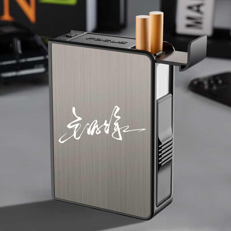 20支装烟盒打火机一体直冲火机防风充电充气便携式香烟盒子男刻字