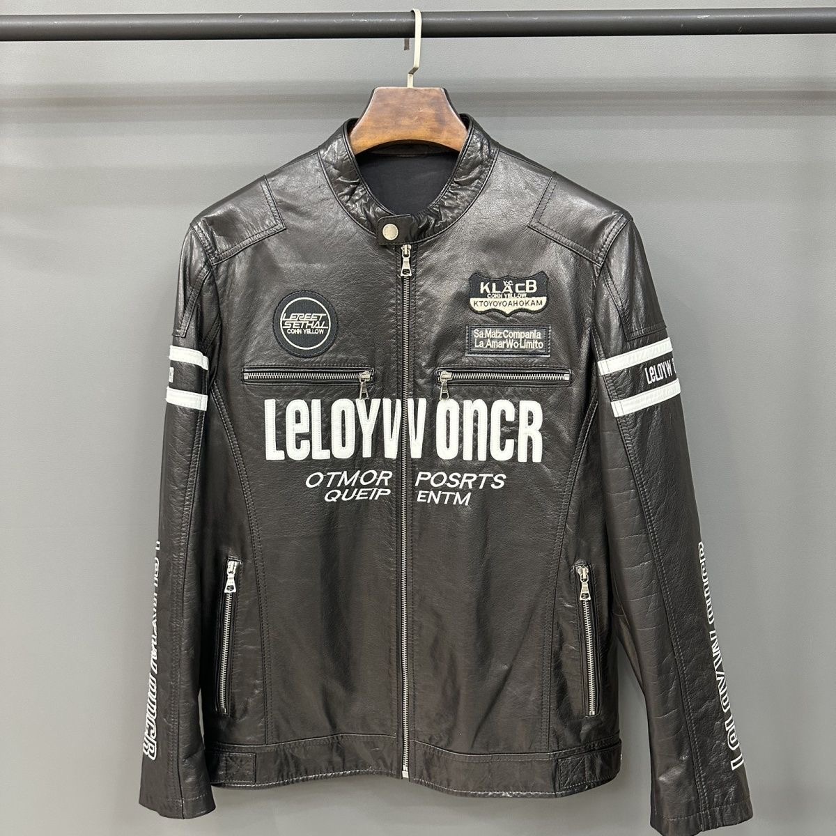 2025秋冬新款男士皮衣机车头层牛皮修身真皮袖标刺绣摩托骑行服潮