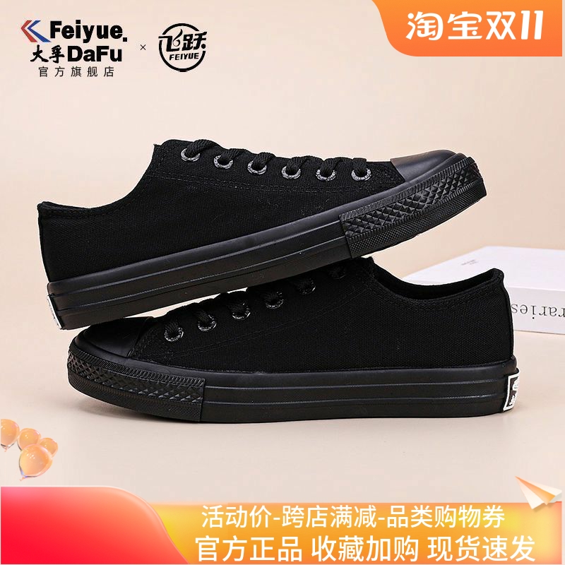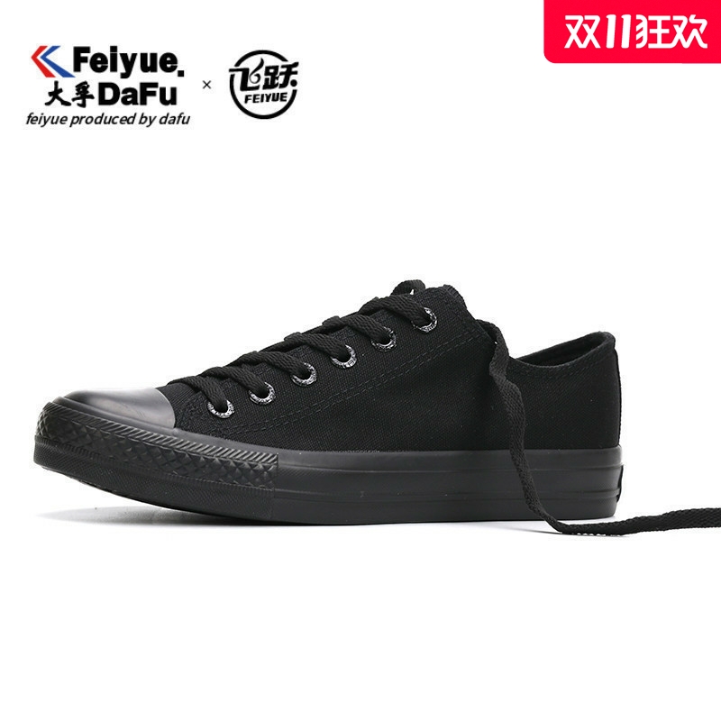 飞跃feiyue帆布鞋男全黑社会鞋街拍运动鞋子情侣款学生板鞋女新