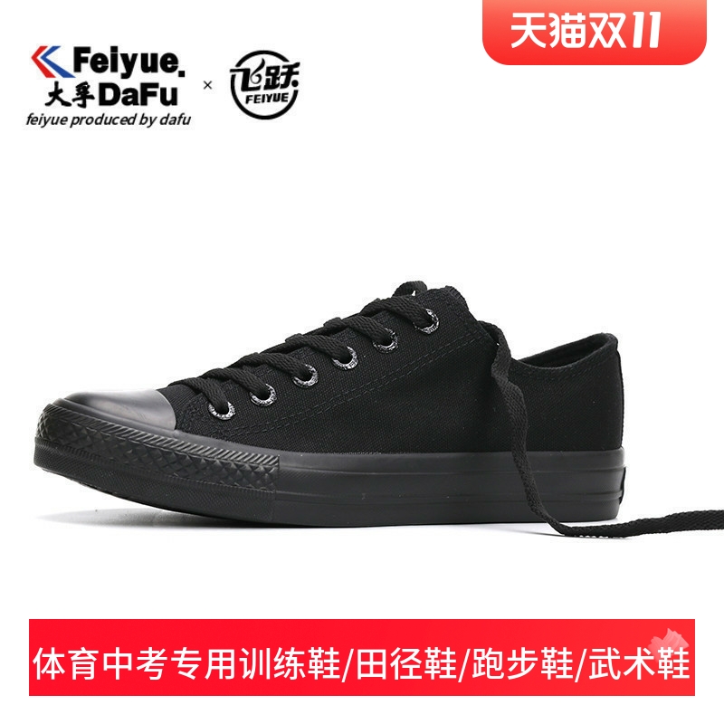 飞跃帆布鞋男街拍运动鞋情侣鞋学生百搭时尚全黑低帮板鞋休闲鞋女