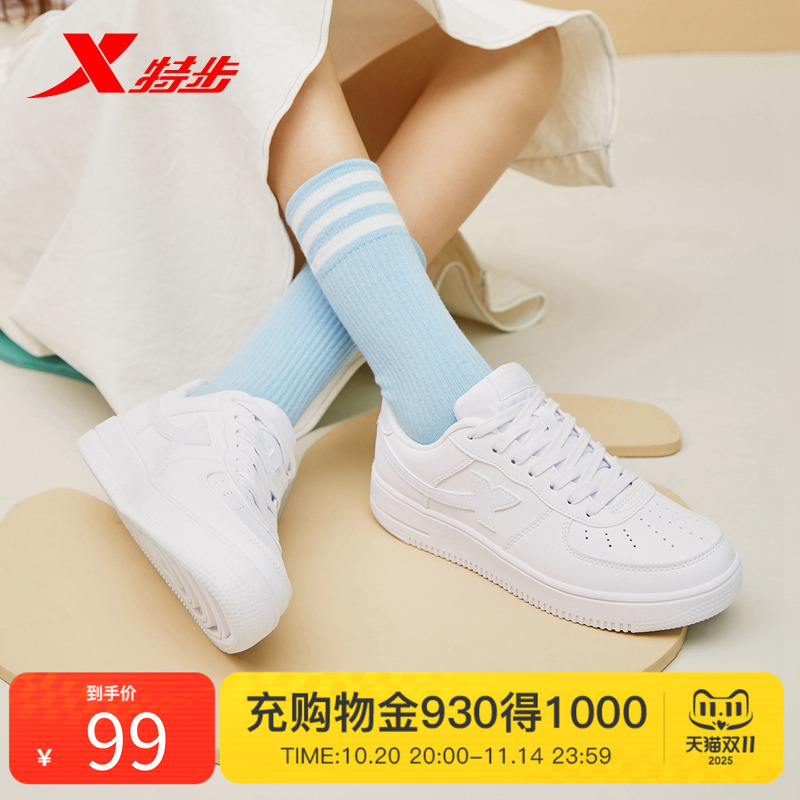 特步板鞋女2025春夏新款复古白色街拍女鞋小白鞋低帮运动休闲鞋子