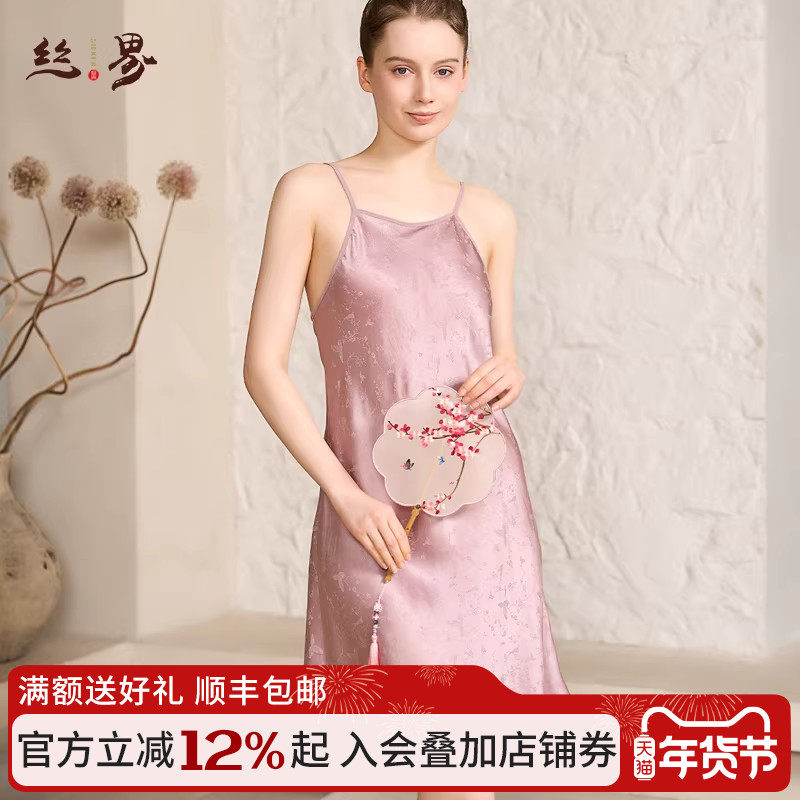 丝界新款100%桑蚕丝新中式风国风提花真丝性感肚兜睡裙丝绸睡衣女