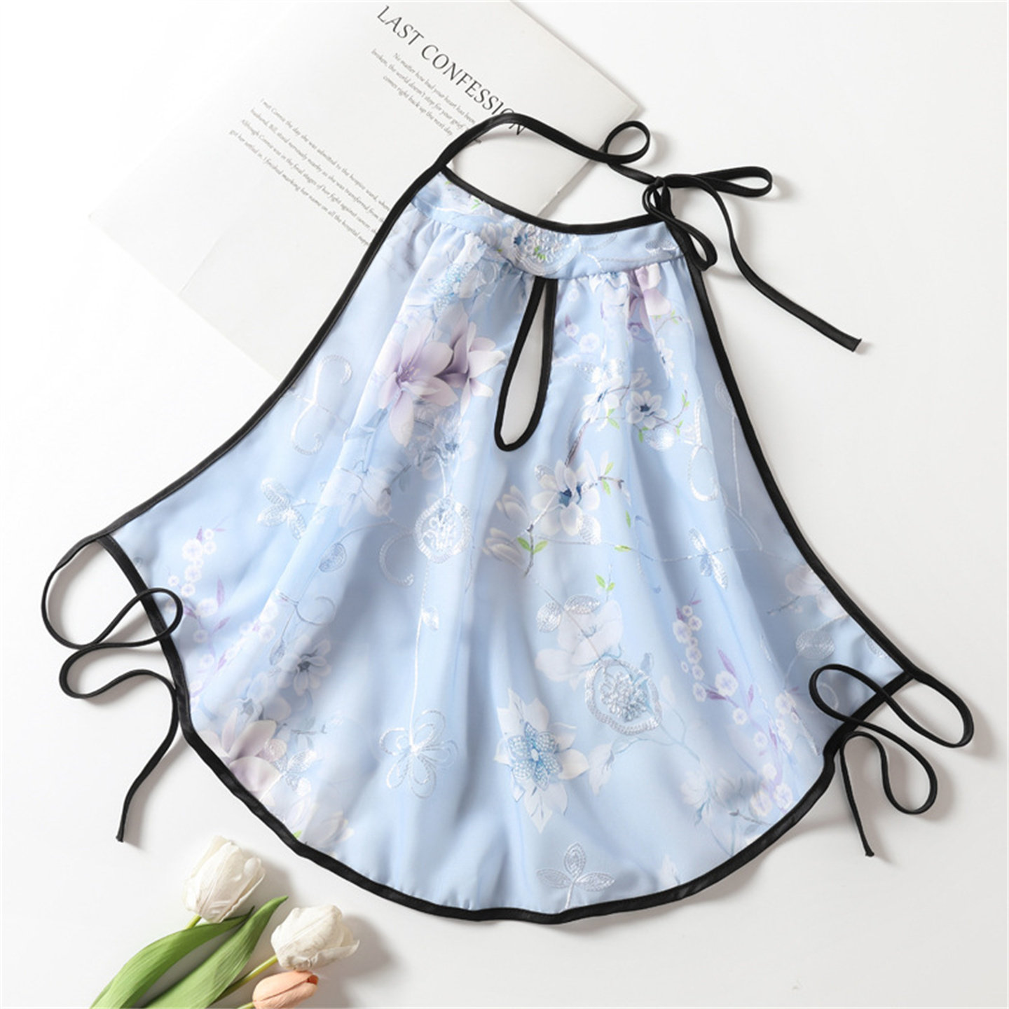 夏季冰丝性感肚兜女成人古风吊带印花系带薄款露背式半透明内睡衣