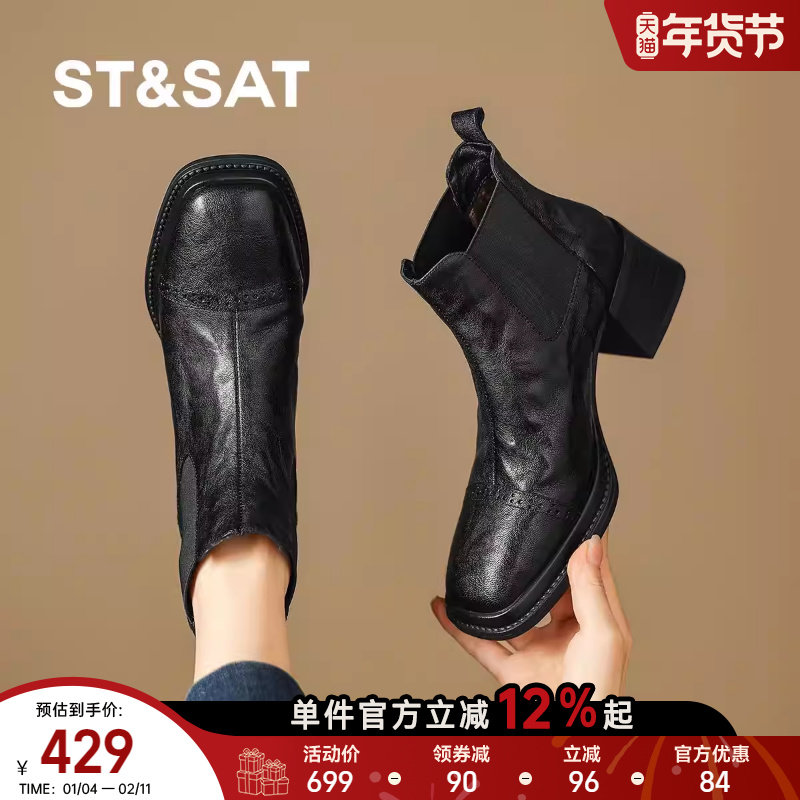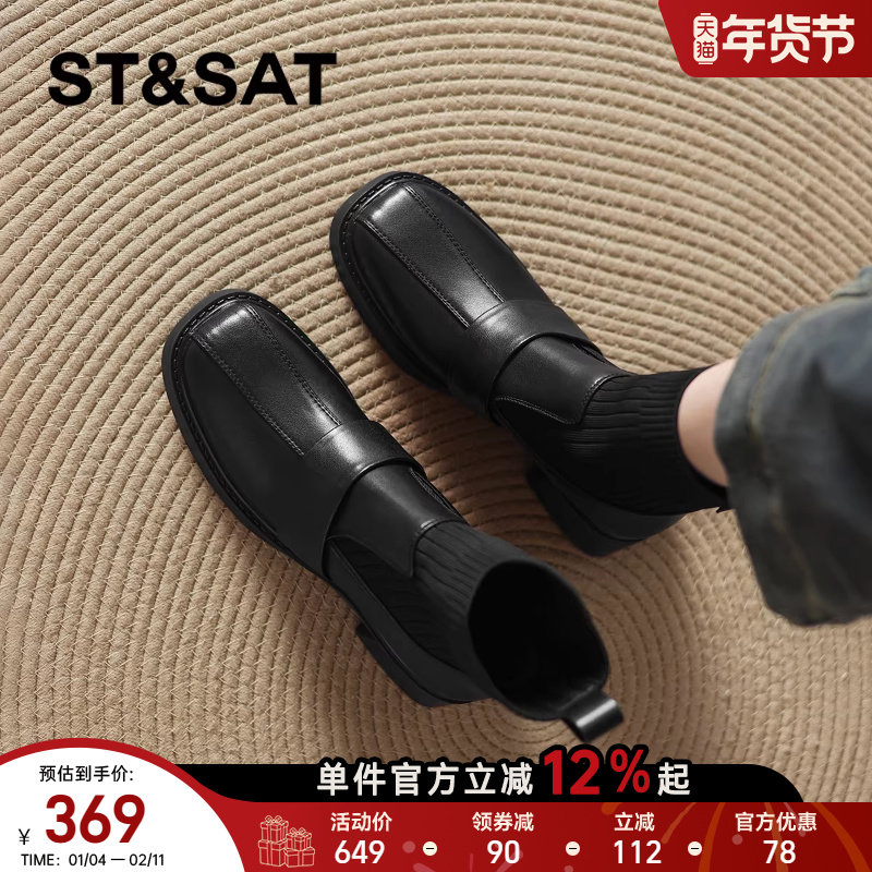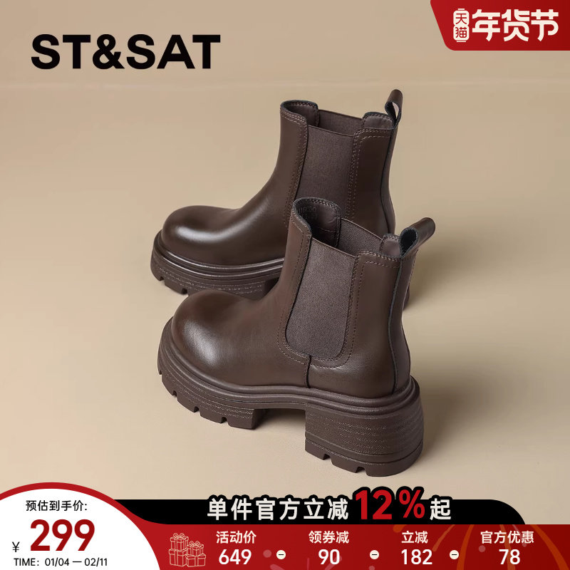 星期六英伦风真皮切尔西靴短靴女2025秋冬新款粗跟马丁靴复古靴子