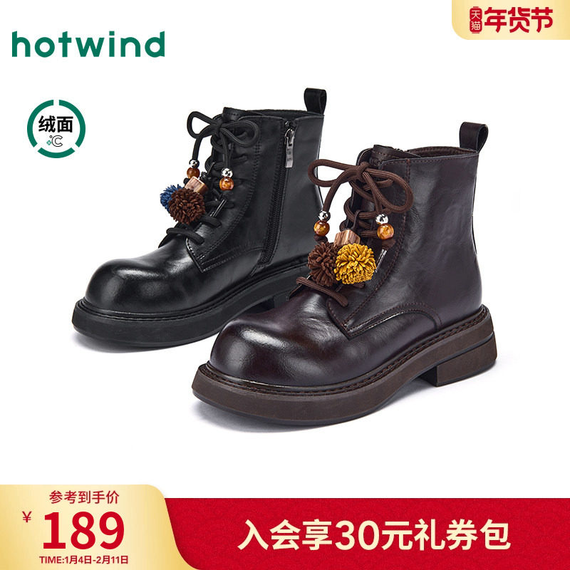 fed粗跟短靴冬季新款女靴时装靴休闲运动靴加绒马丁靴女款YAB160