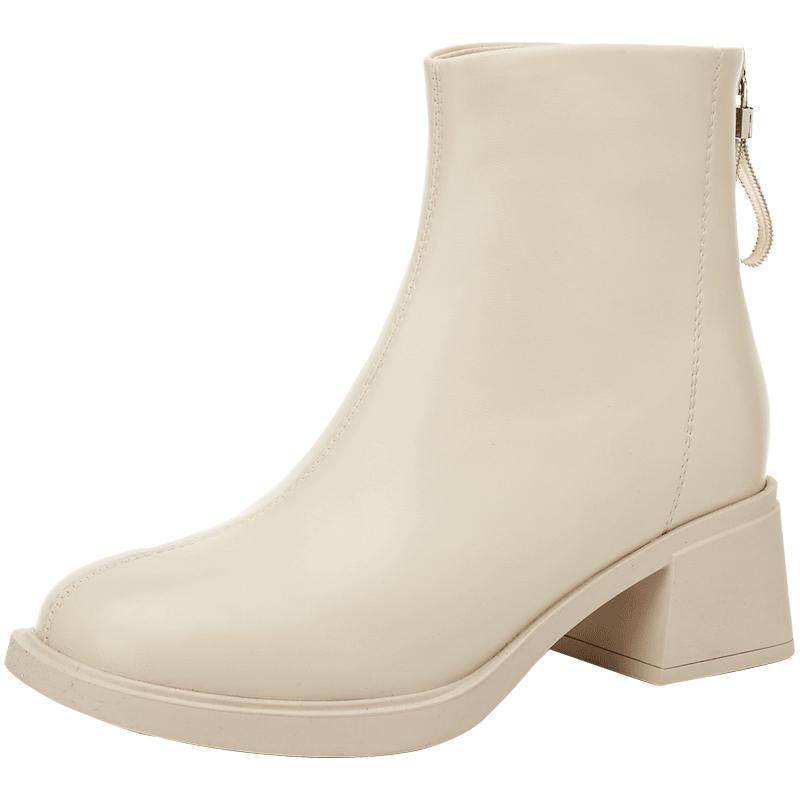 英伦风复古粗跟马丁靴女2025秋冬款后拉链中跟圆头切尔西短靴