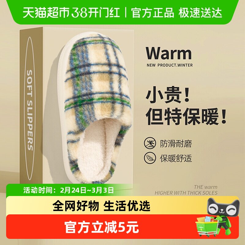 棉拖鞋女秋冬季家居室内保暖防滑厚底情侣家用毛毛绒棉拖男士冬天