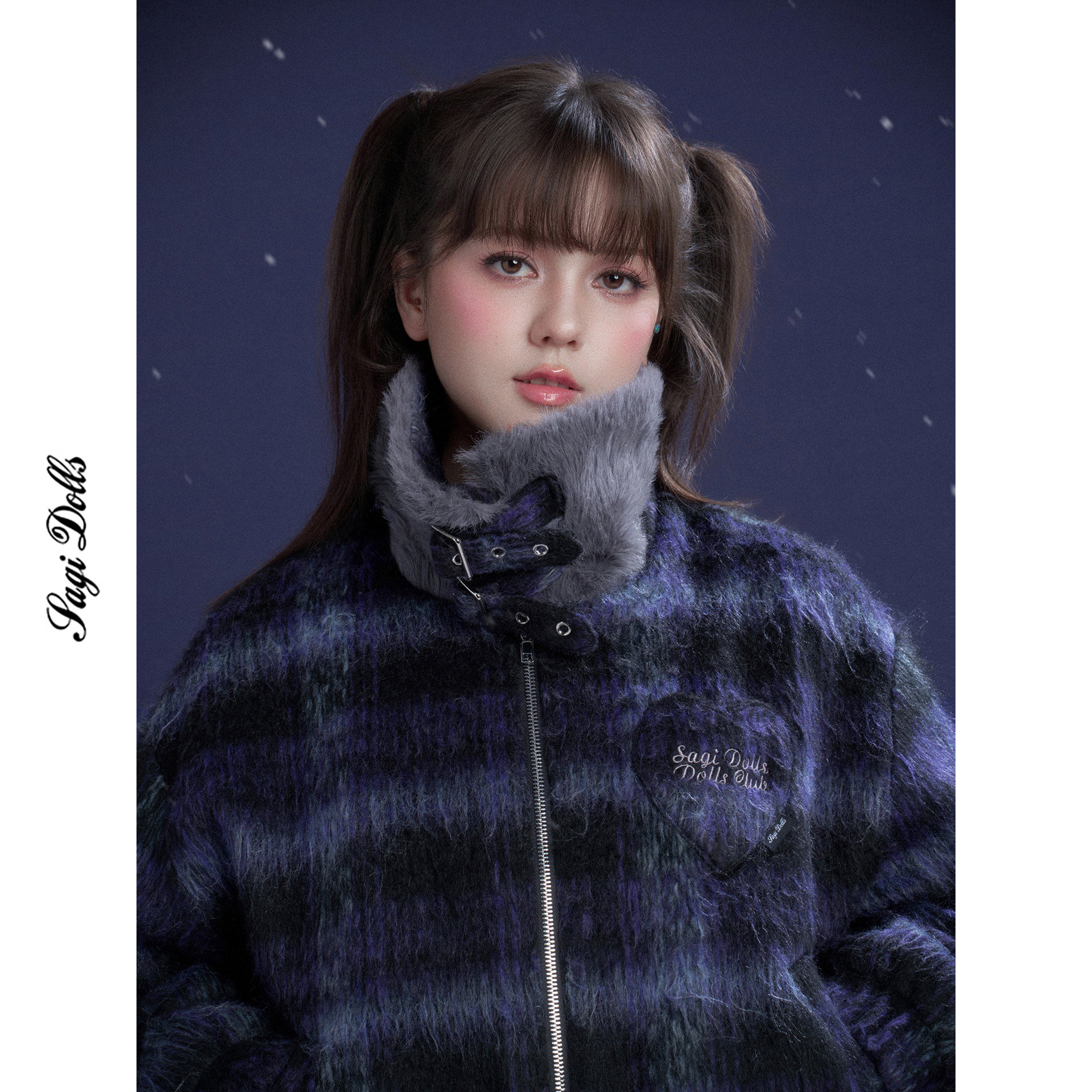 SagiDolls少女斗志 #星幻#甜酷高领蓝紫格毛呢外套宽松休闲百搭冬
