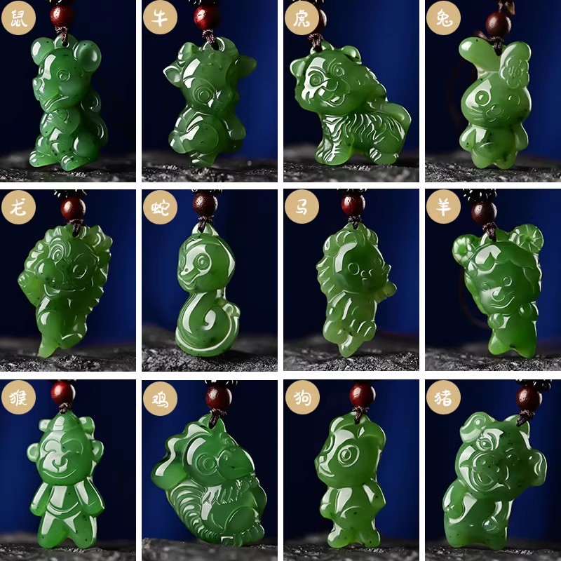 玉石12生肖吊坠项链碧玉属鼠本命年虎马兔蛇鸡牛羊猴仿和田玉挂坠