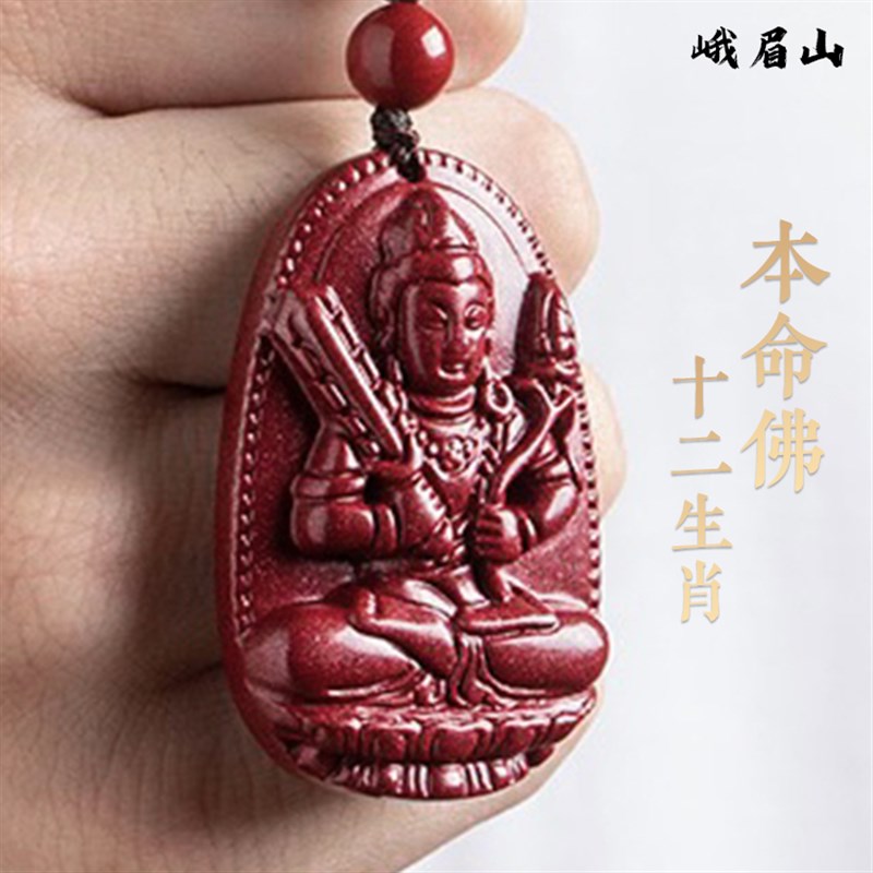峨眉山天然朱砂本命佛吊坠本命年太岁属鼠兔龙马鸡挂件护身符项链