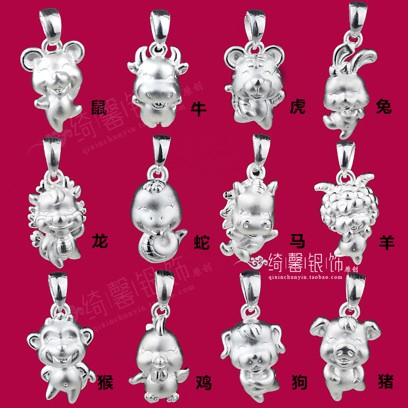 S999纯银十二生肖吊坠项链宝宝龙鸡鼠羊本命年转运送女友刻字礼物