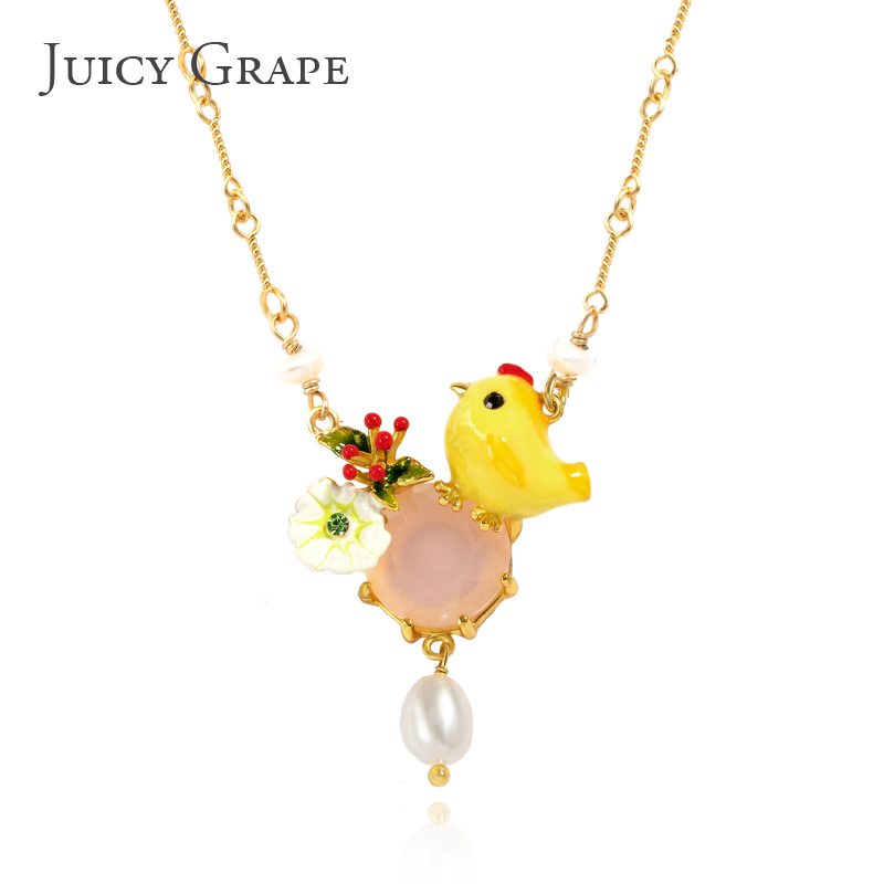 个性时尚芙蓉石立体小黄鸡珍珠项链女小众设计师款本命年装饰饰品