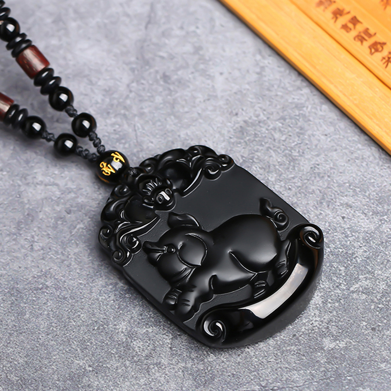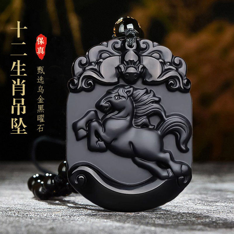 天然黑曜石十二生肖牛鼠虎兔龙蛇马羊猴鸡狗猪本命年男士项链吊坠