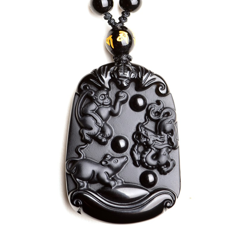 黑曜石十二生肖吊坠鼠牛虎兔龙蛇马羊猴鸡狗猪本命年男女项链礼物